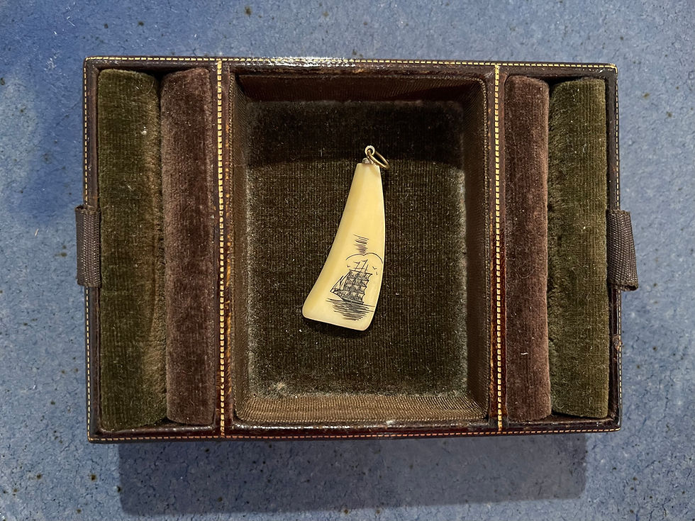Vintage Bone Scrimshaw Pirate Ship Necklace
